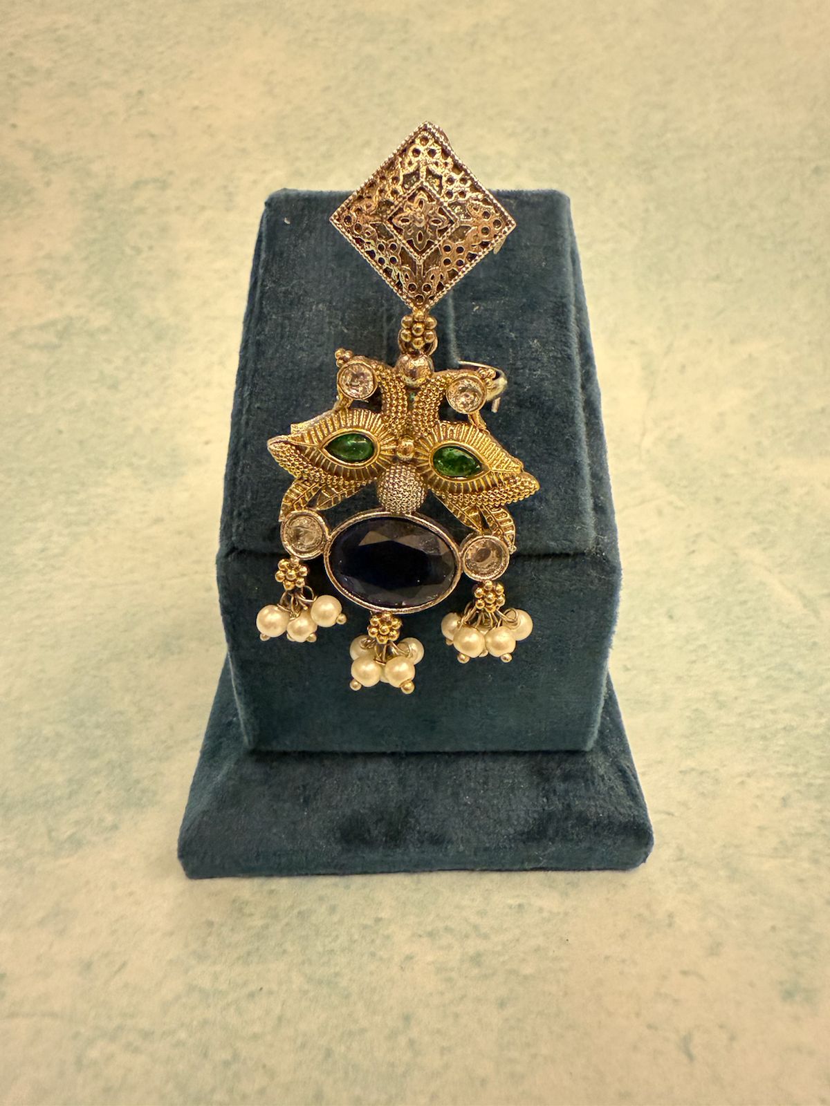 Simple yet stunning, this oxidized German silver ring features one brilliant, diamond-colored stone at its center that commands attention. Its clean, elegant design highlights the magnificent clarity and light of the single gem. This versatile ring can stand alone as a timeless statement piece or add a sophisticated touch to your everyday look, exuding understated grace.